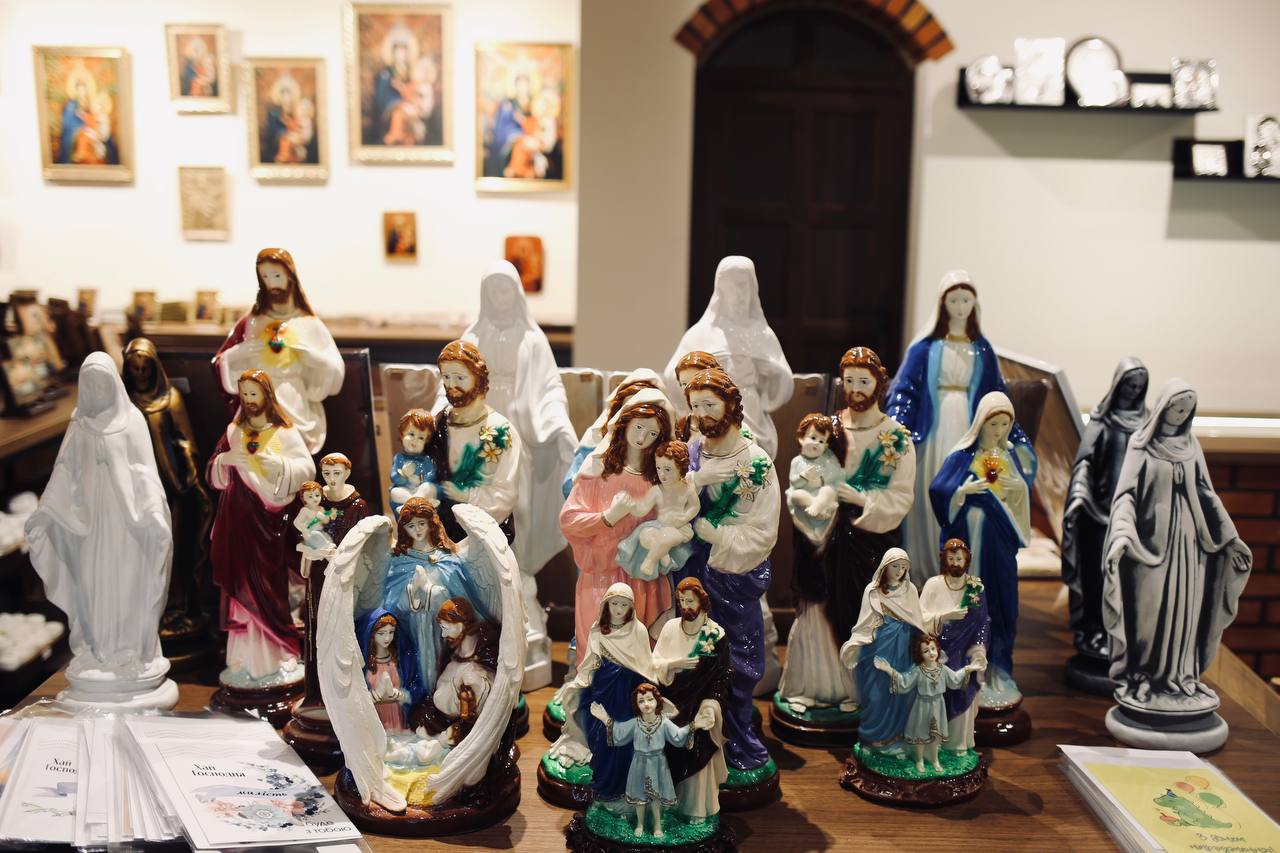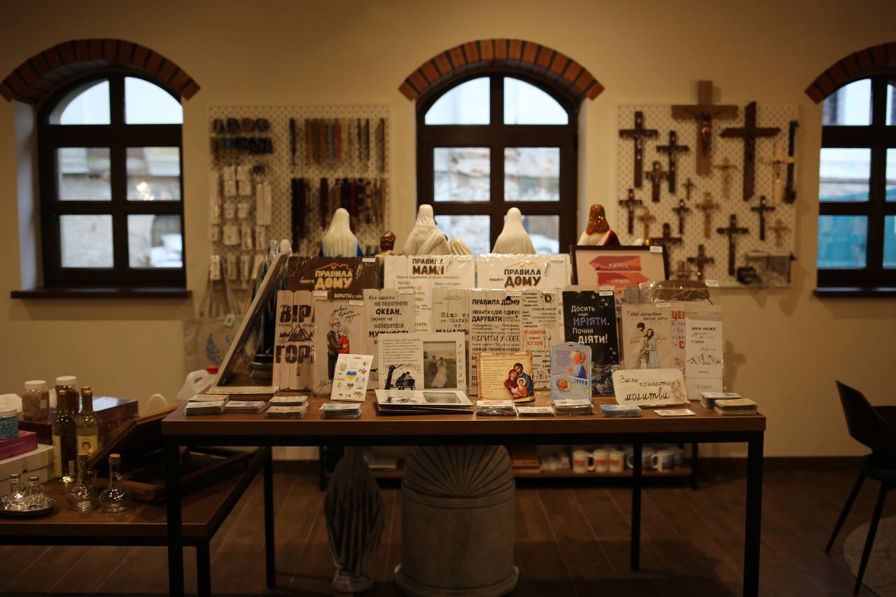 Відвідувачі можуть придбати різноманітну сувенірну продукцію з символікою Бердичівського Санктуарію та міста Бердичева — магніти, брелки, декоративні тарілки та чашки, поштові марки тощо.